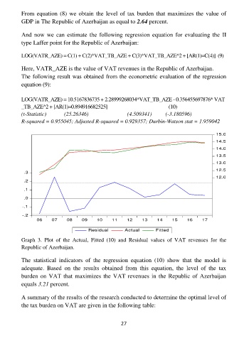 LOG(VATR_AZE) = C(1) + C(2)*VAT_TB_AZE + C(3)*VAT_TB_AZE^2 + [AR(1)=C(4)] (9)