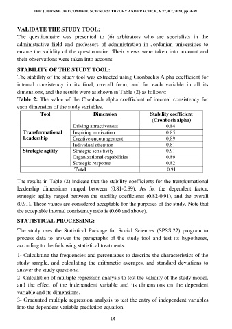 The stability of the study tool was extracted using Cronbach's Alpha coefficient for