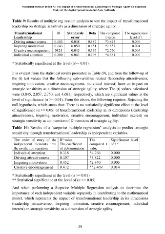 Table 9: Results of multiple reg ression analysis to test the impact of transformational