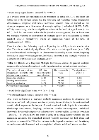 Table 14: Results of a Stepwise Multiple Regression analysis to predict strategic