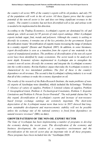 this regard, diversification of Azerbaijan's exports and increase of non-resource