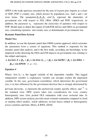 of GDP. POP is country size, which proxies by population size. And ϵ and v are
