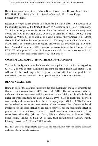 gender in this relationship. However, brand awareness was examined from