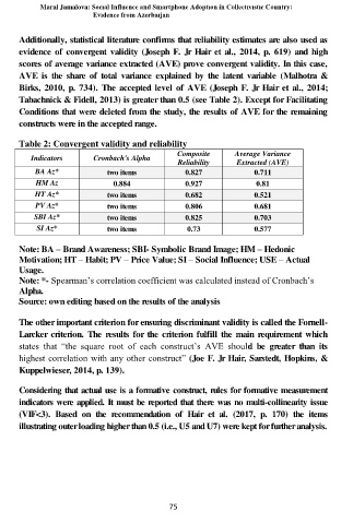 evidence of convergent validity (Joseph F. Jr Hair et al., 2014, p. 619) and high