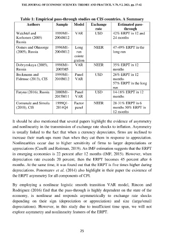 Table 1: Empirical pass-through studies on CIS countries. A Summary