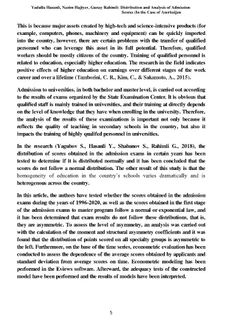 Yadulla Hasanli, Nazim Hajiyev, Gunay Rahimli: Distribution and Analysis of Admission