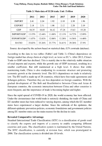 Table 2: Main data of EU28 trade. Unit :Trillion