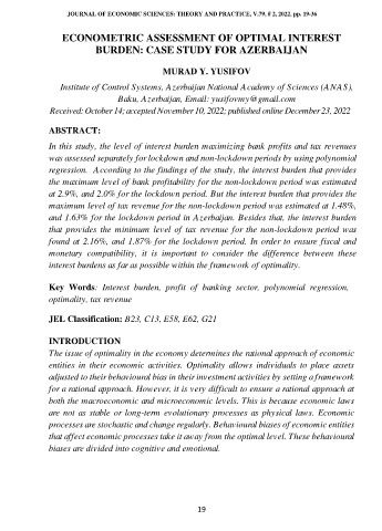 THE JOURNAL OF ECONOMIC SCIENCES: THEORY AND PRACTICE, V.79, # 2, 2022, pp. 19-36