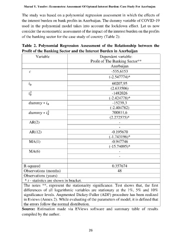 the interest burden on bank profits in Azerbaijan. The dummy variable of COVID-19