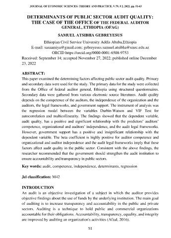 DETERMINANTS OF PUBLIC SECTOR AUDIT QUALITY: