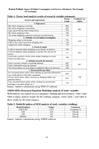 Table 5: Model fit indices of SEM analysis of study variables (clothing)