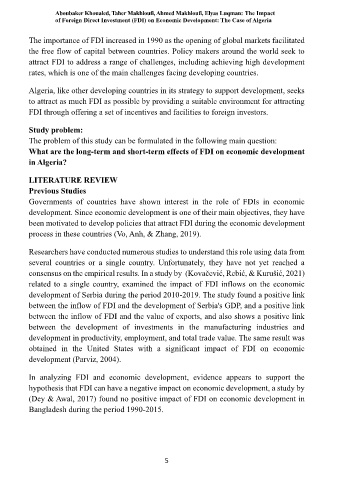 of Foreign Direct Investment (FDI) on Economic Development: The Case of Algeria