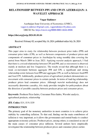 RELATIONSHIP BETWEEN PPI AND CPI IN AZERBAIJAN: A