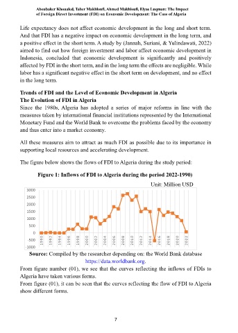Figure 1: Inflows of FDI to Algeria during the period 2022 - 1990 (