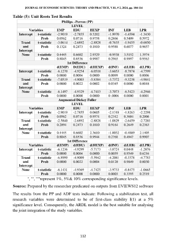 The results from the PP and ADF tests indicate : Following a stabilization test, all