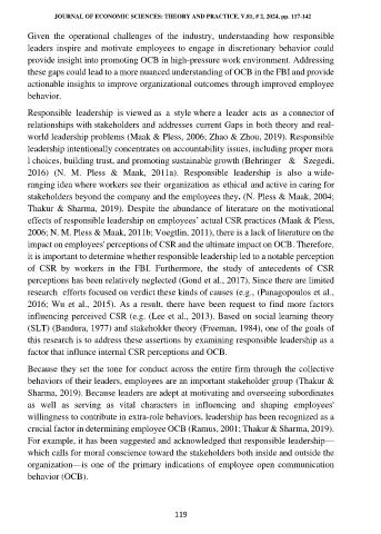 of CSR by workers in the FBI. Furthermore, the study of antecedents of CSR