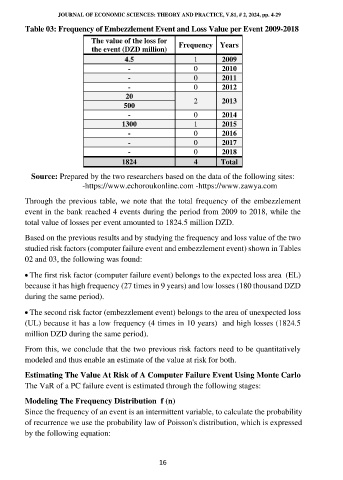Table 03: Frequency of Embezzlement Event and Loss Value per Event 2009-2018