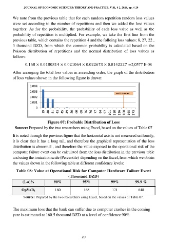 Table 08: Value at Operational Risk for Computer Hardware Failure Event