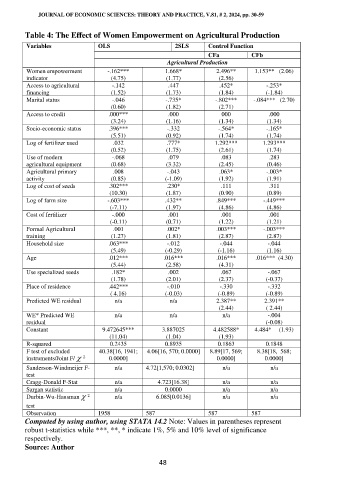 Table 4: The Effect of Women Empowerment on Agricultural Production