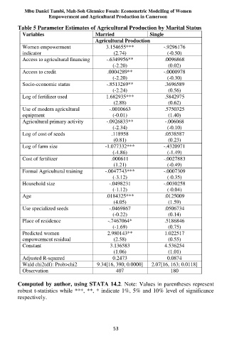 Table 5 Parameter Estimates of Agricultural Production by Marital Status