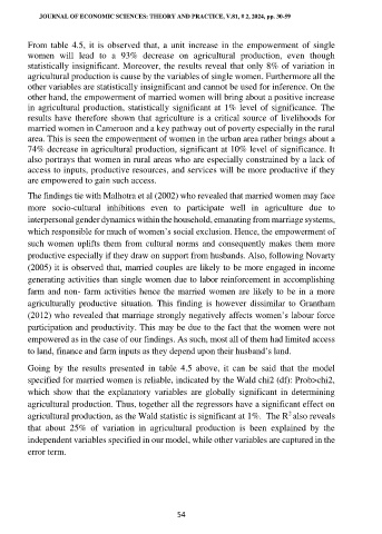 From table 4.5, it is observed that, a unit increase in the empowerment of single