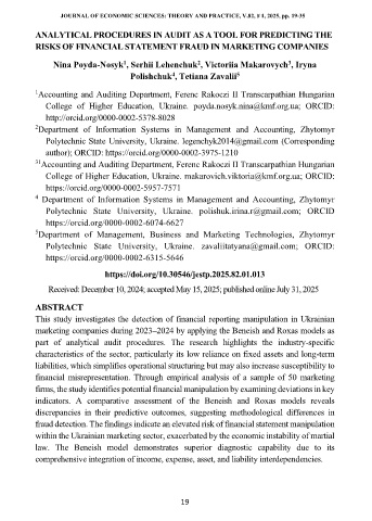 THE JOURNAL OF ECONOMIC SCIENCES: THEORY AND PRACTICE, V.82, # 1, 2025, pp. 19-35