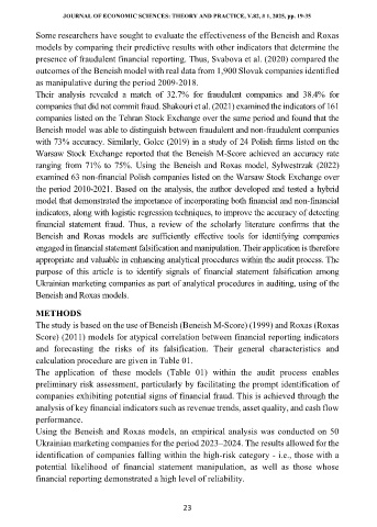 presence of fraudulent financial reporting. Thus, Svabova et al. (2020) compared the