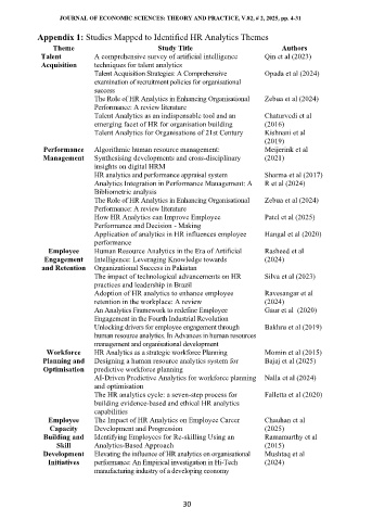 Appendix 1: Studies Mapped to Identified HR Analytics Themes