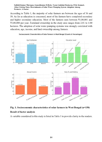 Fig. 1. Socioeconomic characteristics of solar farmers in West Bengal (n=150)