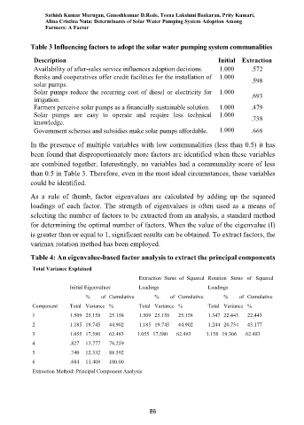 Table 3 Influencing factors to adopt the solar water pumping system communalities