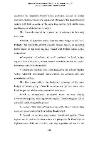 development capacity of each particular region. Therefore regions can be
