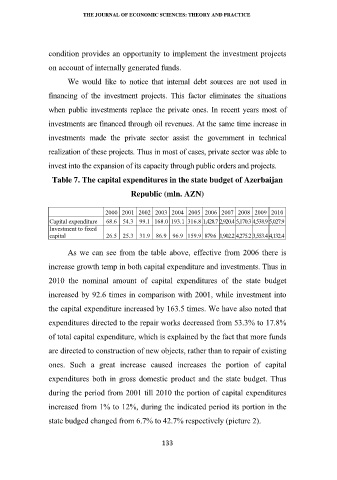 Table 7. The capital expenditures in the state budget of Azerbaijan