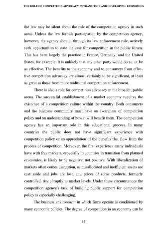 THE ROLE OF COMPETITION ADVOCACY IN TRANSITION AND DEVELOPING ECONOMIES