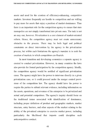 THE ROLE OF COMPETITION ADVOCACY IN TRANSITION AND DEVELOPING ECONOMIES
