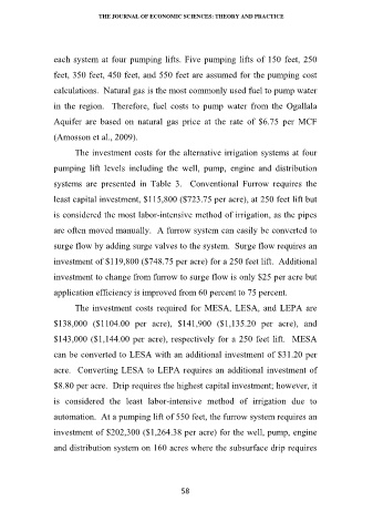 least capital investment, $115,800 ($723.75 per acre), at 250 feet lift but