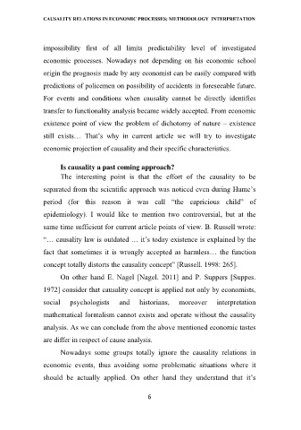 CAUSALITY RELATIONS IN ECONOMIC PROCESSES: METHODOLOGY INTERPRETATION