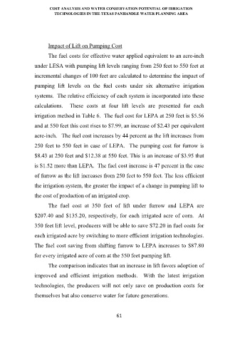 acre-inch. The fuel cost increases by 44 percent as the lift increases from