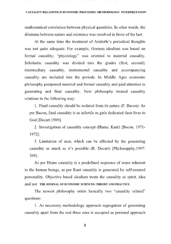 2. Investigation of causality concept (Hume, Kant) [Becon. 1971-