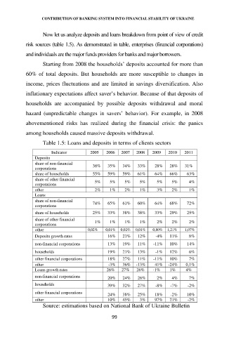 Now let us analyze deposits and loans breakdown from point of view of credit
