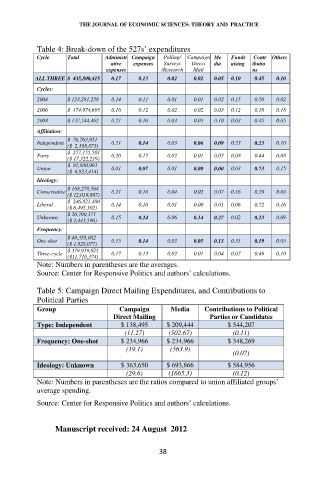 Table 5: Campaign Direct Mailing Expenditures, and Contributions to