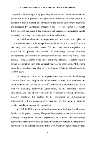 STUDYING OF SPECIAL PRACTICAL ISSUES OF ABUSE OF DOMINANCE