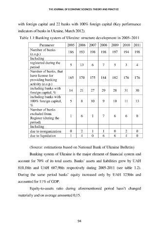Table 1.1:Banking system of Ukraine: structure development in 2005–2011
