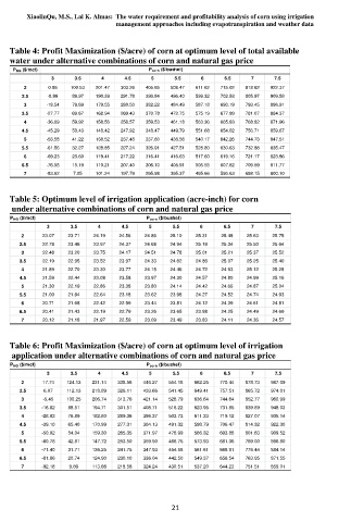 Table 5: Optimum level of irrigation application (acre-inch) for corn