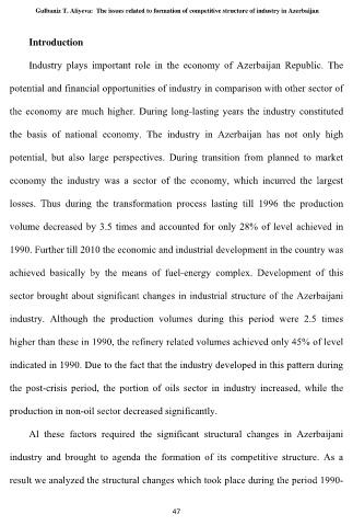 sector brought about significant changes in industrial structure of the Azerbaijani