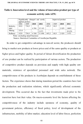 Table 6. Innovation level and the volume of innovation product per type of