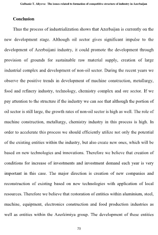Gulbaniz T. Aliyeva: The issues related to formation of competitive structure of industry in Azerbaijan