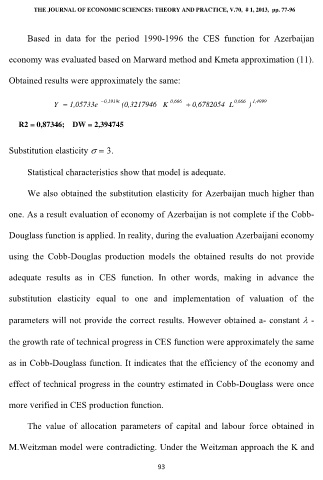 Based in data for the period 1990-1996 the CES function for Azerbaijan