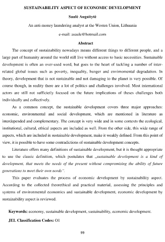SUSTAINABILITY ASPECT OF ECONOMIC DEVELOPMENT