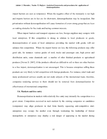 and imports barriers are in fact are for short-term, demonopolization may be inexpedient. But