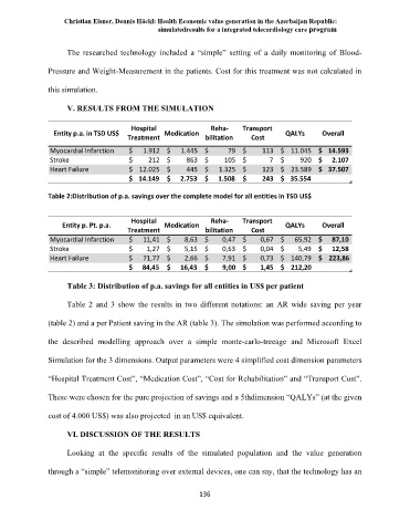 (table 2) and a per Patient saving in the AR (table 3). The simulation was performed according to